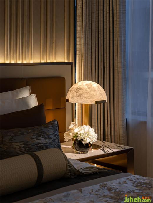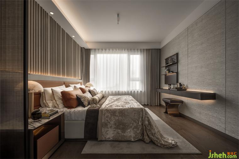 延续空间简洁而利落的线条,主卧以低饱和度的灰主导空间配色,柔软的织物与木质的温润,恰到好处地突显了空间的尺度,让人在走进的一瞬便沉浸于漫卷云舒的松弛之中。