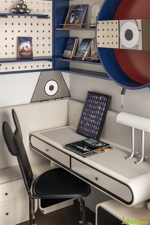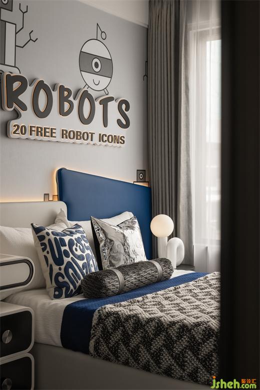 儿童房以机器人为主题,采用蓝、白、灰为主要色系,揭示出小朋友烂漫与天真的日常,激发着对世界的探索。