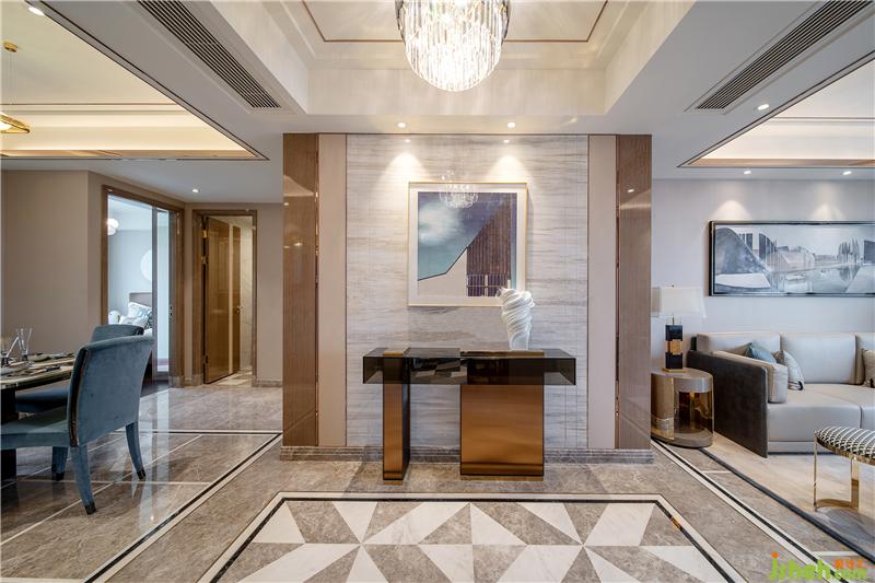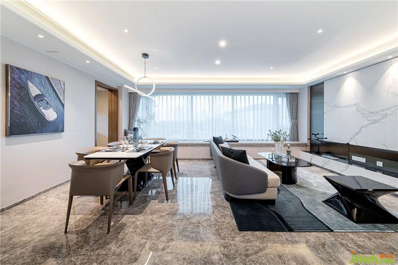 遵循“如无必要,勿增实体”的理念,设计师追溯室内设计本源,回归建筑美学初心,摒弃繁冗复杂的元素堆砌,以精准的设计语言、独特的设计视角、新奇的设计思路,充分发挥了空间与建筑、光影、材质、色泽的对话作用,不需一笔一墨,以空间为画布、木石为画笔,传神、真切地刻画出了现代菁英生活的真实写照。