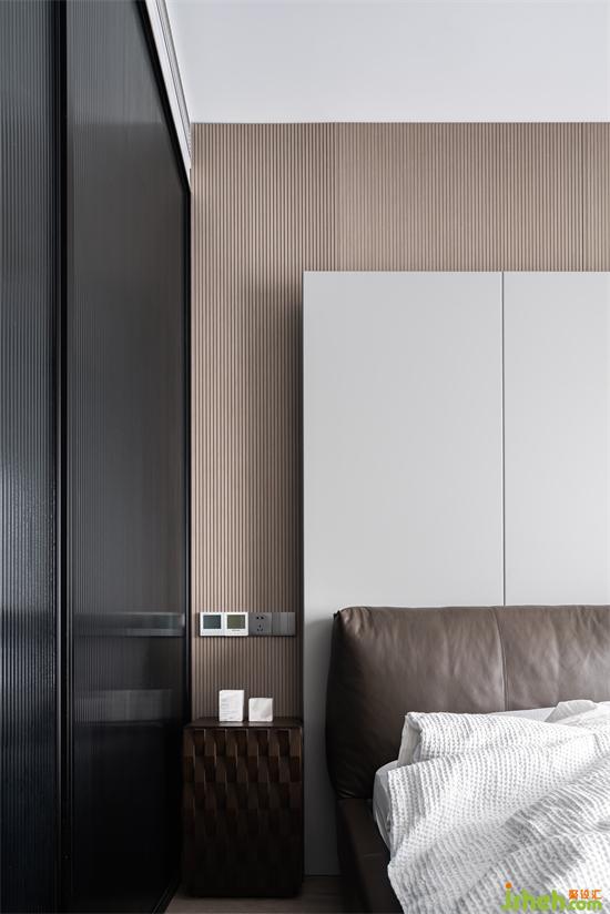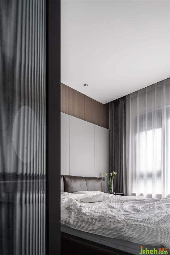 有别于现代硬朗的公共空间,卧室设计上我们遵从人体对睡眠环境的需求