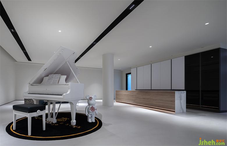 独立地下室的优点在于私密性良好,我们把这个空间定义为音乐剧场,两三百平空间里我们没有做过多的隔断,除却刚需功能以外全做开敞化处理 。