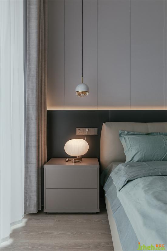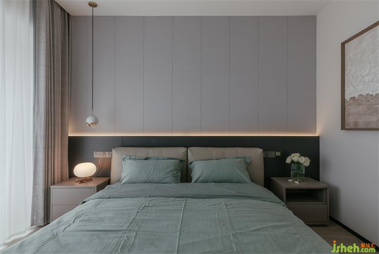 温暖放松的睡眠环境是这个卧室空间的设计思路,温润的地板,家装设计柔和的硬包甚至相同色系的油画都在契合这个主旋律。
