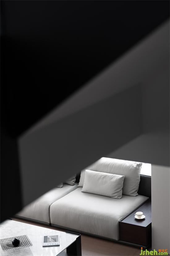 The bearing column divides the boundary of the visitor area, and the design adopts the method of elevation and color separation to further enhance the level of the space structure. The stone paving the background color of the atmosphere, and the wood floor makes a coherent integration of the elevation area and some steps, with clear hierarchy and clear function.