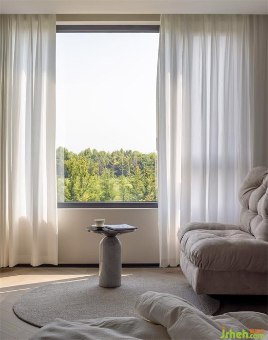 Introducing light into the room is a way for us to pursue nature. The size of the large bay makes it easy to introduce more light into the room. In the evening, a touch of setting sun is poured into the room through the shutters. The strong atmosphere created by dindar's light makes the residence shining at this moment.