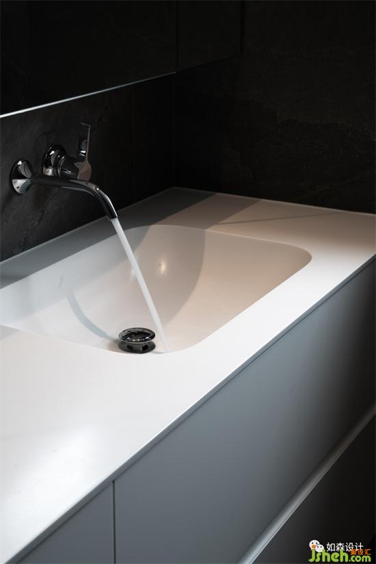 卫生间尤其能体现设计的细节处理能力,一体化的台盆不仅美观更易清洁与整理。家装设计不锈钢的内嵌壁龛,整块的淋浴地面都在彰显设计的细节贯彻极简的思路。