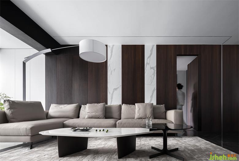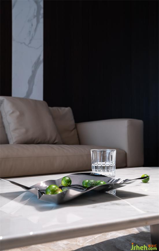 The urban sense of the design, black and white is always sought after, the very textured smoked oak veneer makes the tone of the space to do the spread, the white rock plate embellished among them, undoubtedly enhance the modern sense of the material, the wall extends to the top of the linear light through the link relationship of materials.