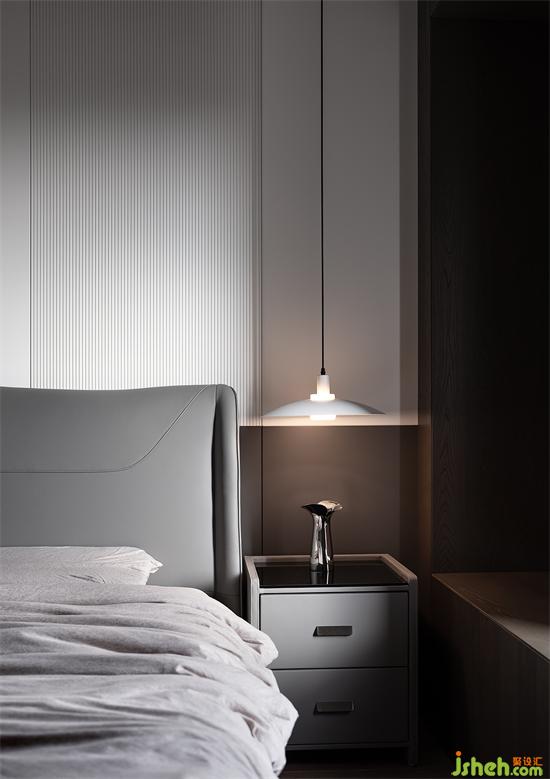 把更多的搭配细节带到睡眠空间,基调现代简单,不同色块的颜色区分,澜山澜豪宅装修设计与整个公区的材质呼应,完成设计语言的完整闭环。