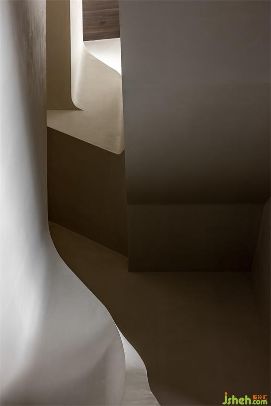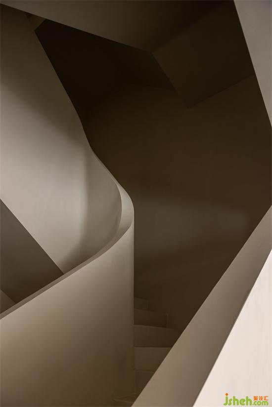 空间形态设立了许多对立元素,扭转与平直、方正与圆弧、离散与聚合。景瑞无双别墅设计诸多手段旨在打造一个具有对立感与趣味性的实验空间。
