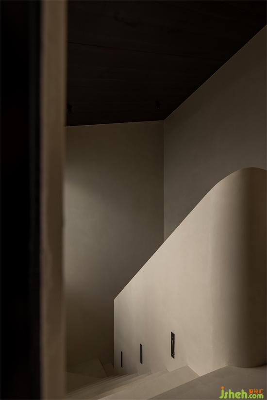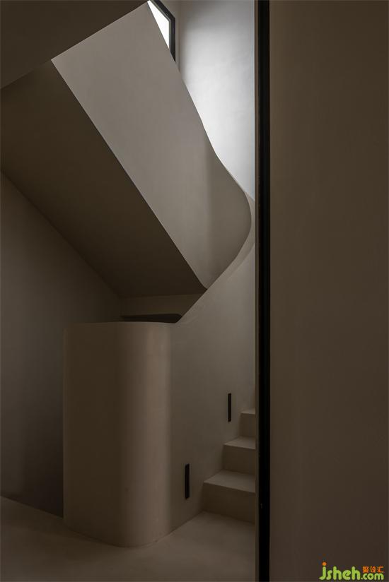 文首提到的这个建筑小品便是住宅的楼梯。景瑞无双别墅设计原有的建筑楼梯狭窄闭塞,在进行土建扩改之后才形成具有一定舒适感的功能载体。