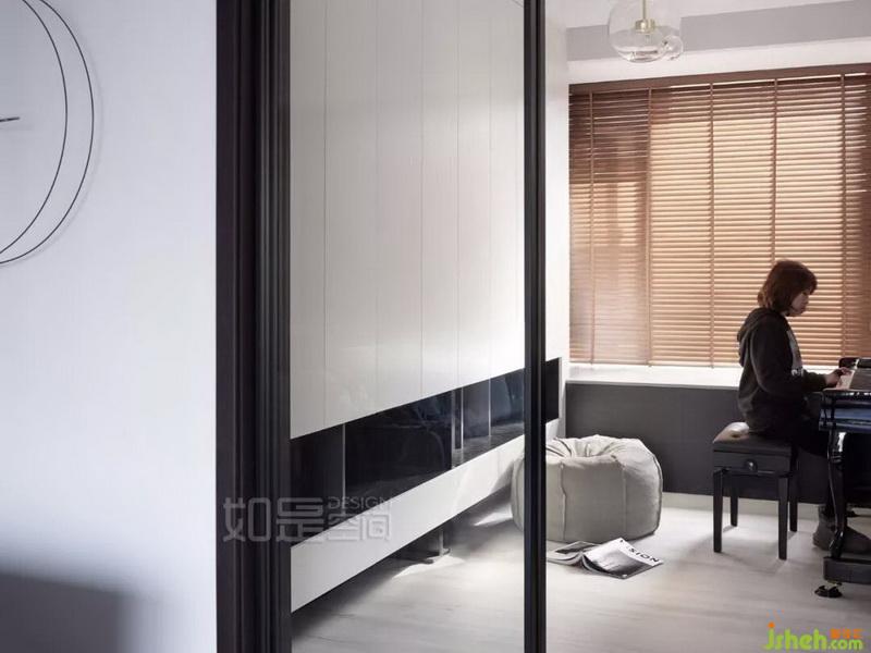 这里储物柜室内设计师也用了悬空的设计,让这一方小空间显得不再局促,同时又有了设计感。