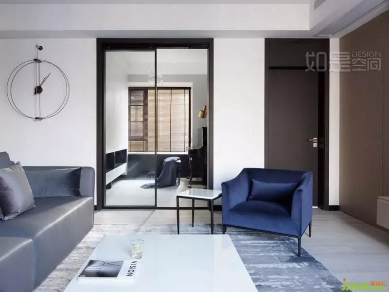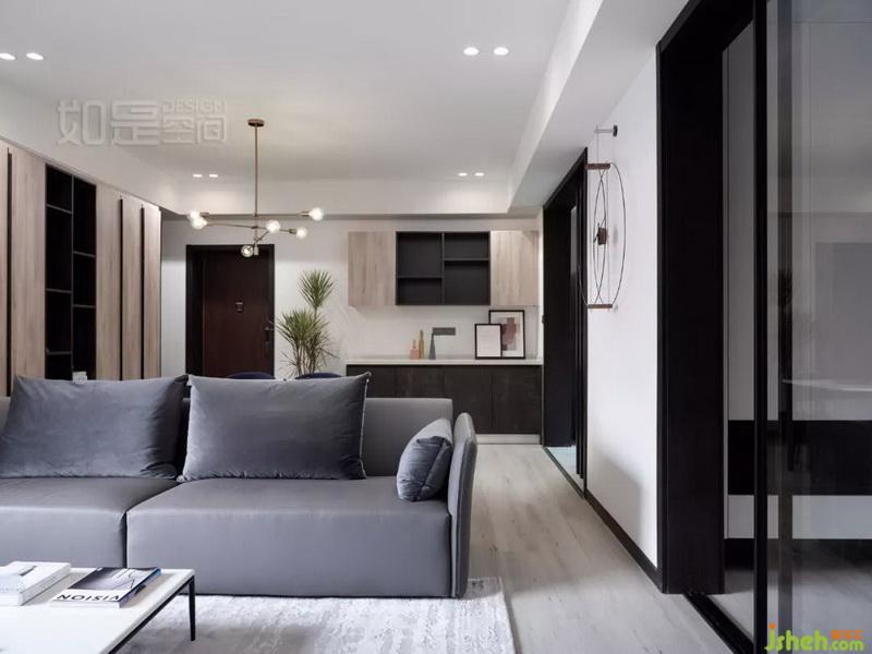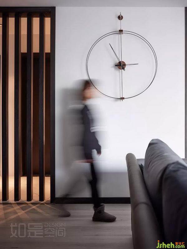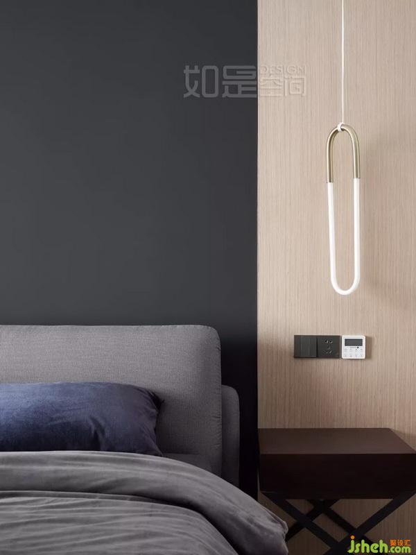 木饰面的使用,结合黑色床头背景,既和整个空间搭配,又在黑灰中显得温馨。