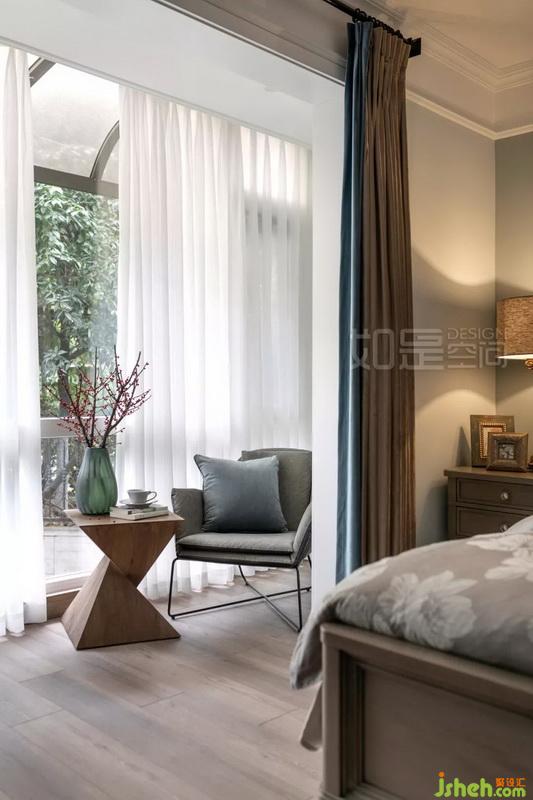 主卧阳台属于主人的单独空间,外面则是下沉庭院。静坐窗边,等雨后那一抹阳光,感受心灵静谧