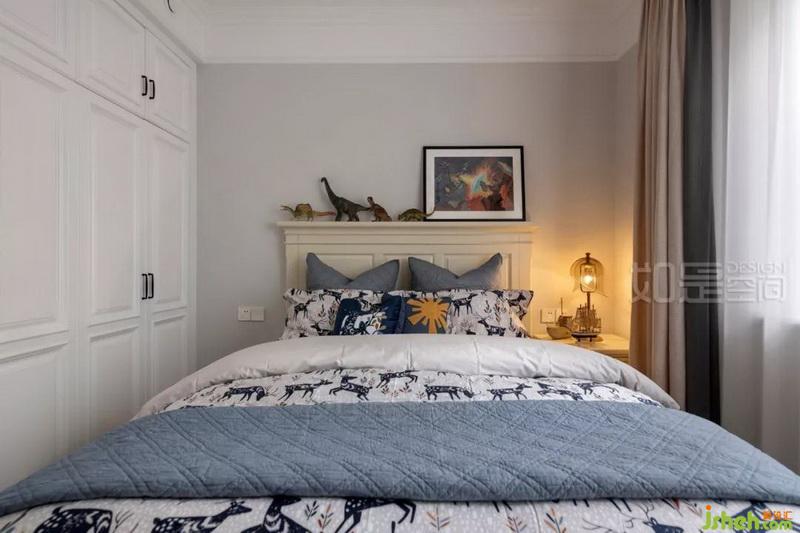 业主希望儿童房的硬装和整屋风格统一,免得日后此房另做他用而需大改。目前则主要通过床品的选择和小朋友的摆件收集来营造童趣氛围。