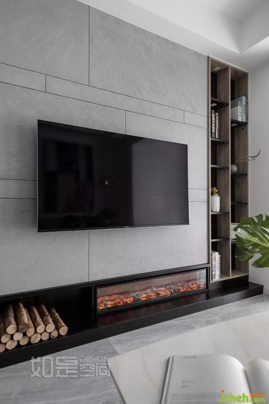 局部通过使用黑色的柜体背板,加强层次感的营造;电视墙旁边小格子,则可以放一些书籍,也让整个大柜体多了一分灵动。