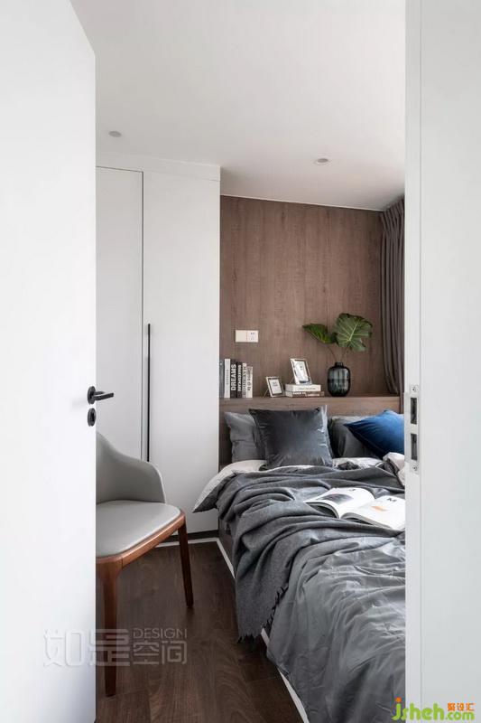 靠背与衣柜都是整体定制,色彩偏于单一更适合老人居住
