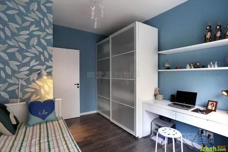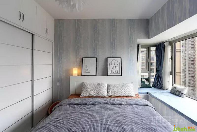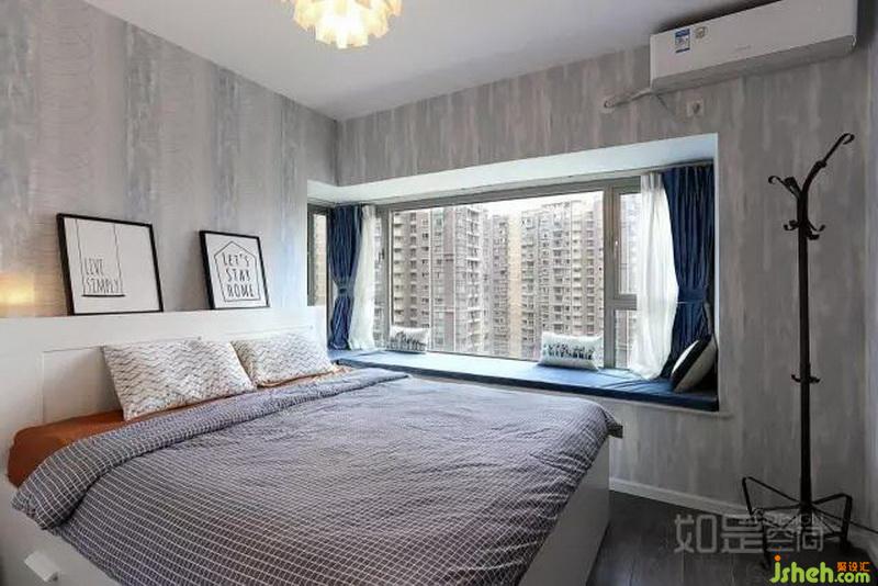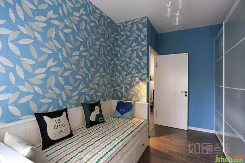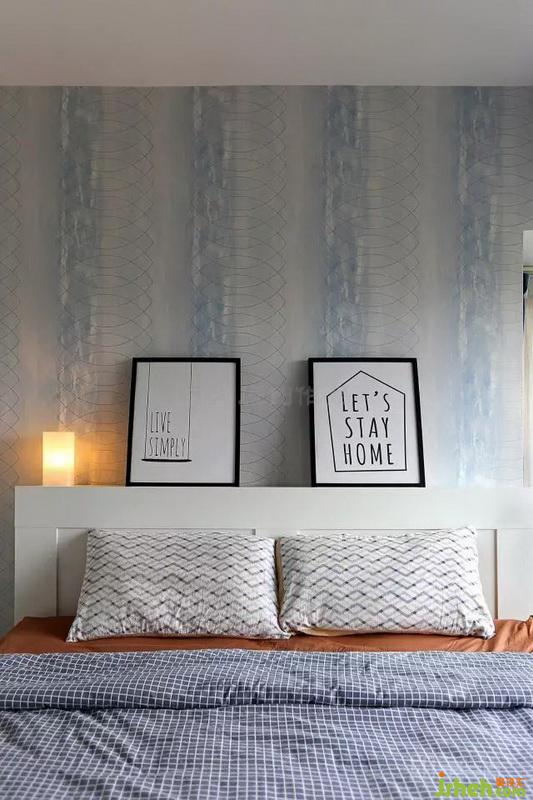 女主人一直不太赞同男业主喜欢现代元素,卧室采用的是混搭北欧宜家风格,墙纸通过图案、纹理、色彩与工艺的结合表达出更多的个性化、艺术化信息,从而产生与居室主人的情感共鸣,带来更多的温馨感,客厅局部也融入了和卧室相同风格的北欧宜家的家具软装。