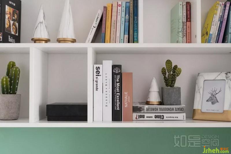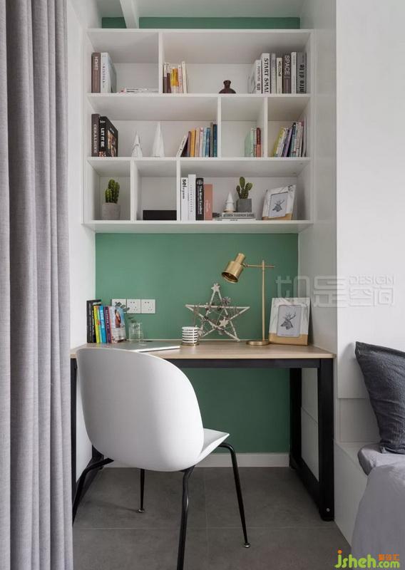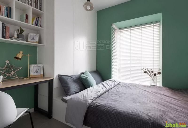 局部灰绿色,其明度和纯度都较低,不会绿到刺眼,能为空间带来低调、安宁的氛围