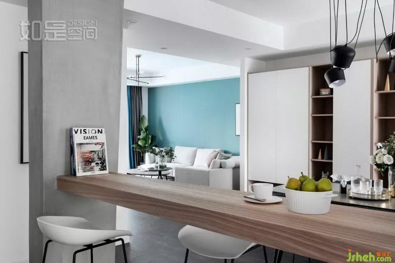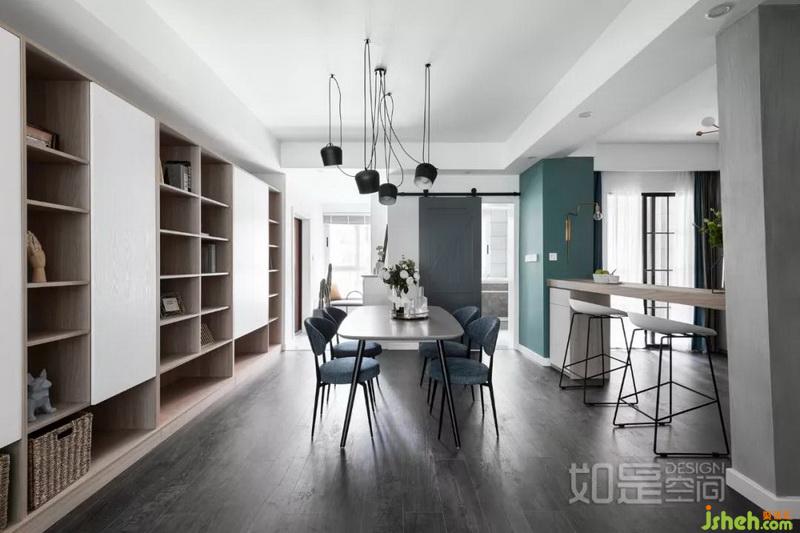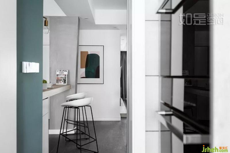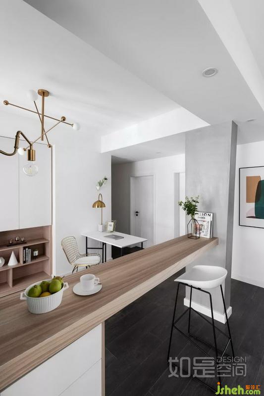 因为吧台的设立,使餐厅与书房的关系,即相互联系又功能区隔