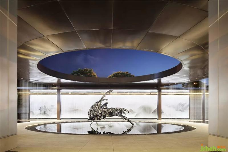 「津门故里」的设计思路在建筑、景观和室内贯穿始终。入门处的建筑外立面塑造了海滨城市独有的轻盈感,而雕塑和室内设计所呈现的景象则是对天津的本土文化更深入的诠释。室内设计师