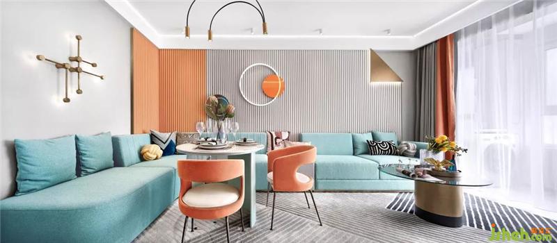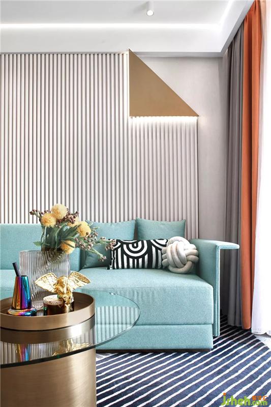 蓝色的沙发,清新而又出挑,让整个空间更加广阔,更有一眼就望见更多美好的可能。因橙色的点缀而更具生机,不需要铺满整个房间,只要一小色块的跃动,便能为家带来新鲜活力让家在矜持和热情中游走。它就像是还带着香气的新鲜橙果,充满阳光的活力,又像是鲜榨的橙汁,给予你一天的精力。样板房设计
