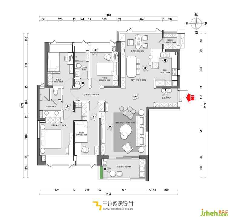③三米家居设计把主卧分割成两个房间,增加独立的奶奶房。