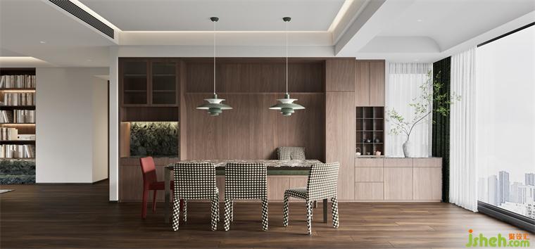 ①三米家居设计把餐厅阳台封窗处理,阳台融入到餐厅,餐厅瞬间宽敞许多,靠窗边设置了一个喝茶区,还在阳台增加了一个储物间。