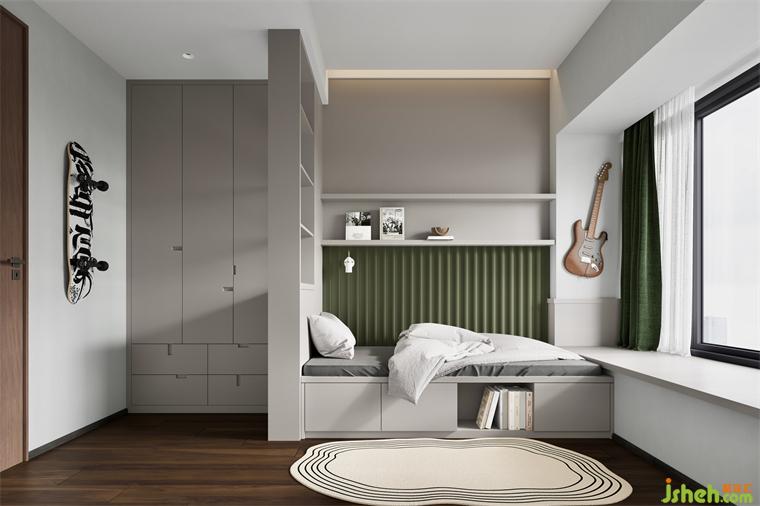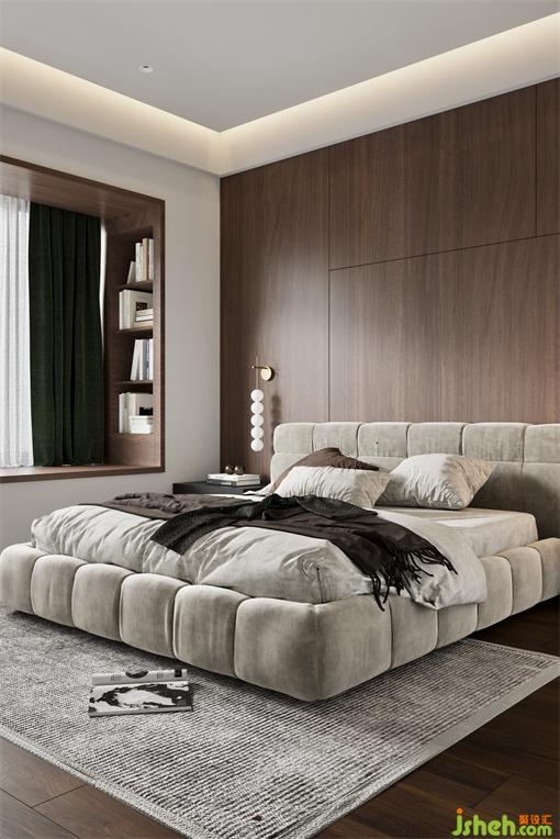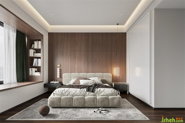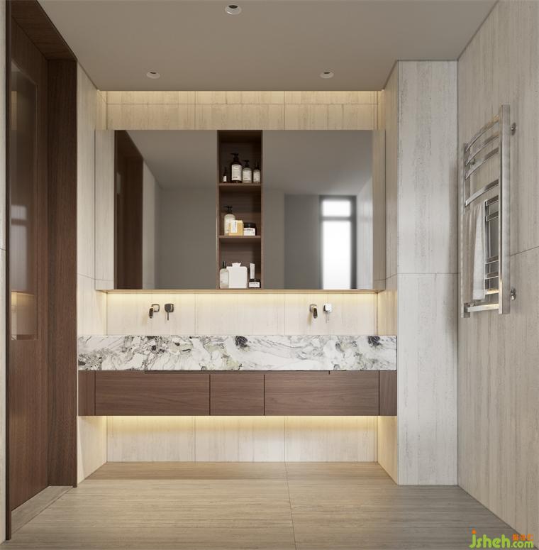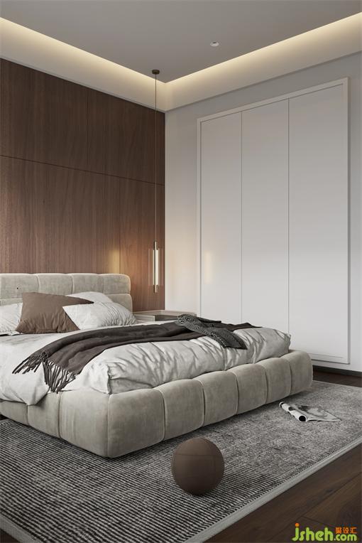 右边白色的衣柜是借用主卫的空间,三米家居设计增大了主卧的衣柜收纳。