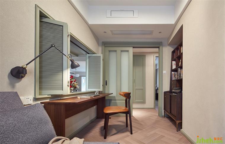 由于整个环境都是随时随地阅读的方式,书房取缔了大大的书柜,深圳家居设计呈现给我们的是简洁干净,客厅与餐厅的一扇窗打开了空间联动,通透。