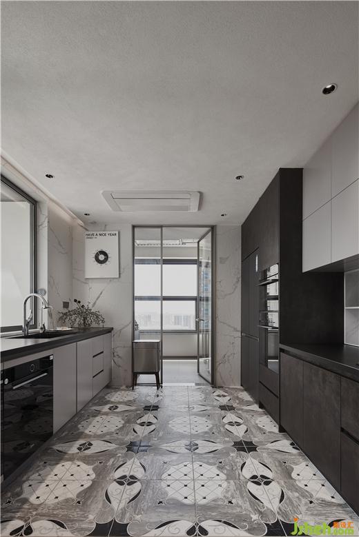 豪宅设计实用的高低操作台、洗碗机、蒸烤箱得心应手。