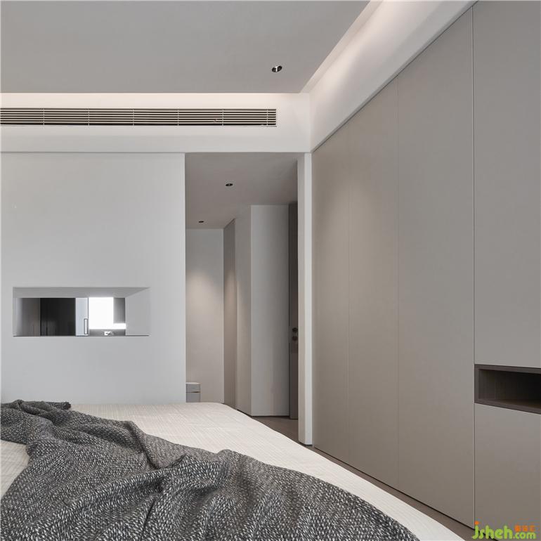 开门的端景让进到卧室的心情变得安静,温润的地板低调沉稳,弧形的床头有一种,包容感、怀抱感,夫妻间相互包容温暖彼此。
