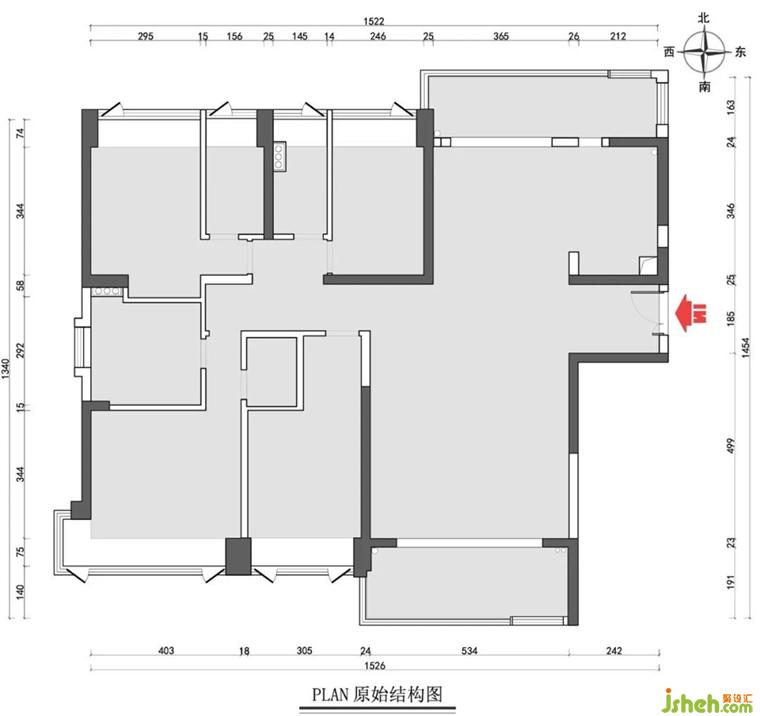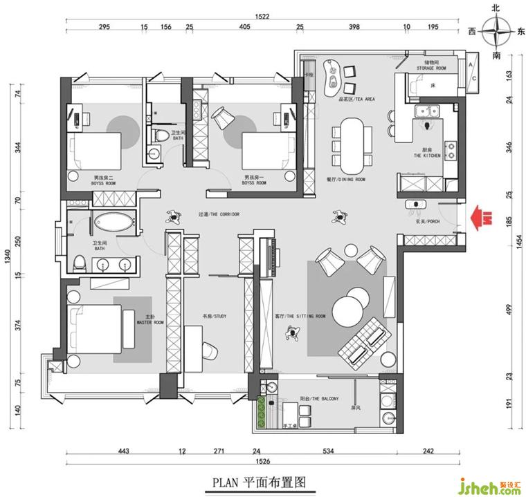 ● 取消原有三个卫生间,改为两个,得以空间平衡。