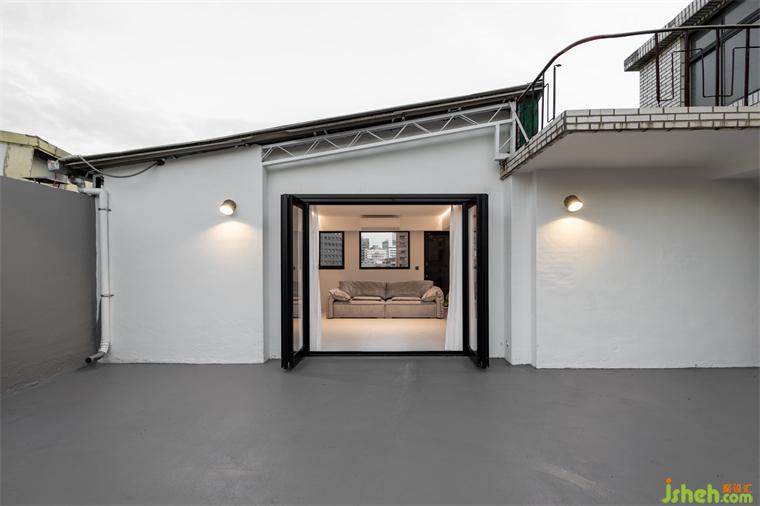 Taking advantage of the ample sunlight on the eighth floor, after observing the angle of sunlight and air circulation, we designed foldable airtight doors for the north-facing terrace window opening. This seamless connection between indoor and outdoor spaces enhances the overall visual experience. The south-facing corridor has been designated for use as an office and yoga space. This design ensures that a tranquil corner is available for late-night work or yoga meditation, effectively separating it from the living functional area on the seventh floor.