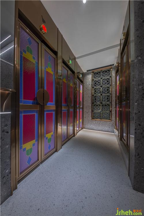 经典元素花格窗,搭配具有独特风格的釉彩砖,诠释了空间的东方特质,点缀上高饱和度的彩色玻璃,装修设计整个空间烘托出浓厚新颖的民国氛围,无形中对应着古城悠久的历史。