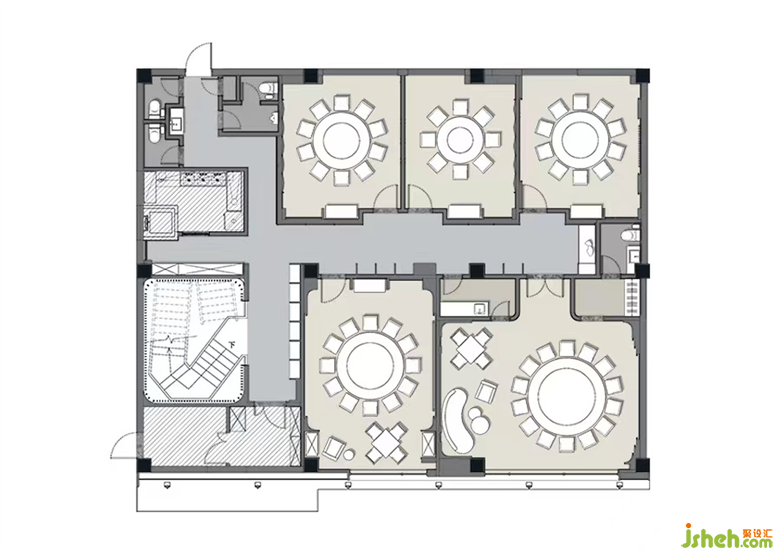 「遣怀」的名字来源于杜牧的同名古诗「遣怀」,“落魄江南载酒行,楚腰纤细掌中轻。十年一觉扬州梦,赢得青楼薄幸名。”统一和谐的柔和米色稳定着空间的平衡,奠定了沉稳宁静的基调,简练流畅的线条为包厢注入清雅隽秀的气质,温厚敦实的木质搭配烟灰色系布艺,质朴素净,浓淡相宜。