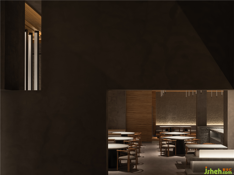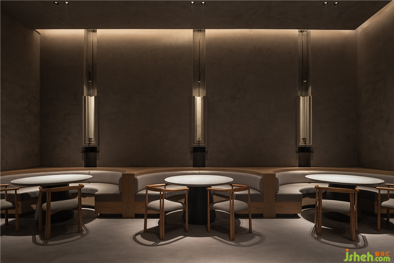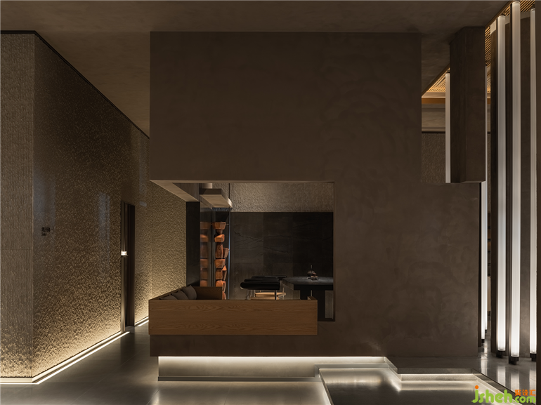 直线与圆梳理规置场景,繁复的想象力因高度克制的抽象手法,生出贴合文脉的端方来,清丽和雅。和子SPA会馆设计镂空的窗格提示空间之间的联系,人们仿佛于窗棱中窥得人间清欢,又陷落在层级的壁灯里,从中望见庭宇次第,路遥灯明。