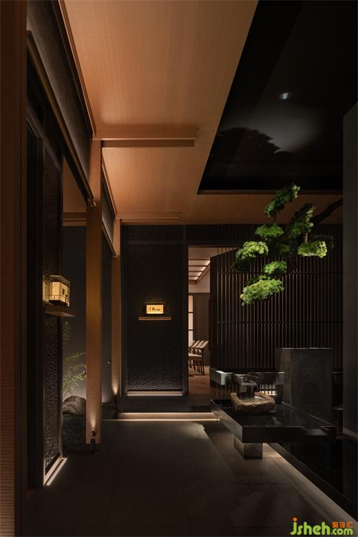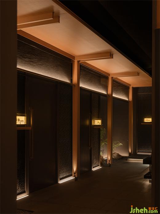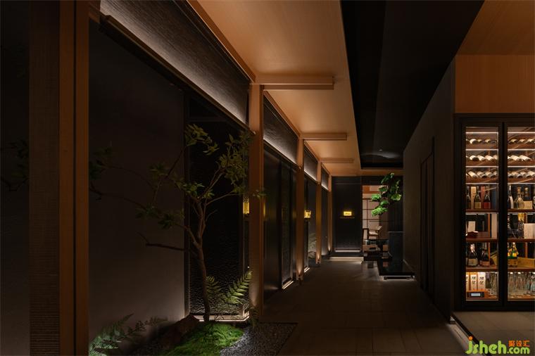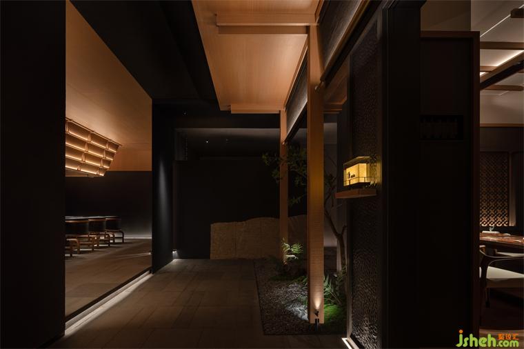 “缘侧”及“连廊”结构折射出一个传统的世界。纵横的线条、质素的材料,让建筑恒久如新。日料餐厅设计脱胎于传统,却也唤醒现在,为时代注入新的活力。