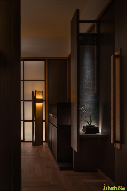 被清寂的墙壁和自然的木纹包围,将灯光调至微暗,将空间与花月相结合,将一切事物诗化,一切也显得朦胧隐约才好,在阴翳中闪闪发着光的兰花,其中蕴含着让人心情沉静的温暖。