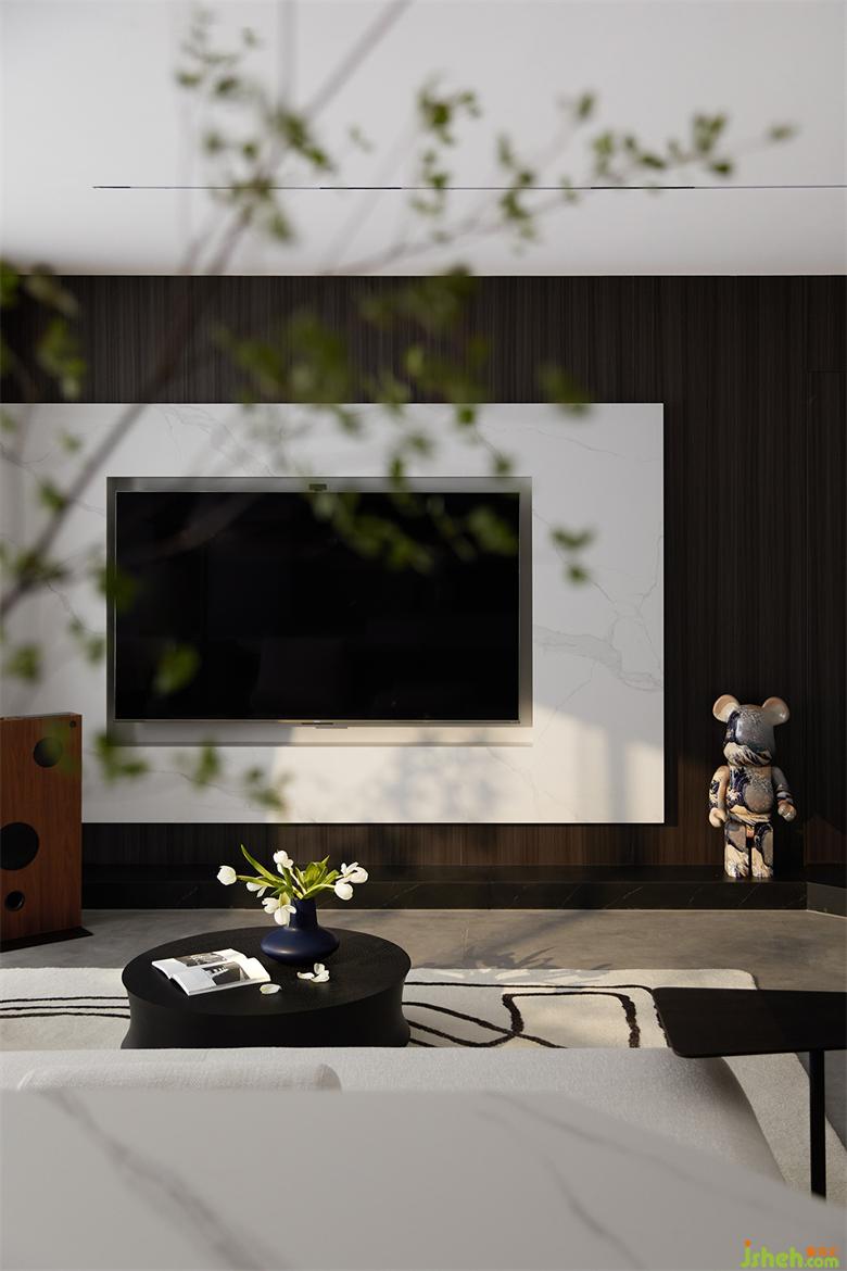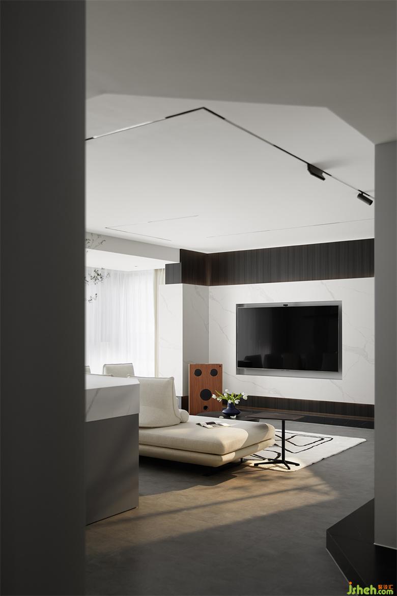 8、色彩上,设计师针对业主的色彩分析,选取白色为主色调提亮空间,给人温馨的感觉,以灰、深棕和黑色点缀空间,让空间在简约中不乏质感。