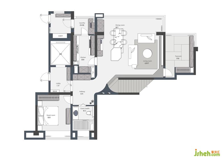 7、把一楼电视墙后的次卧改为榻榻米室,既可在其中喝茶,也可满足女业主想要冥想和瑜伽的需求;