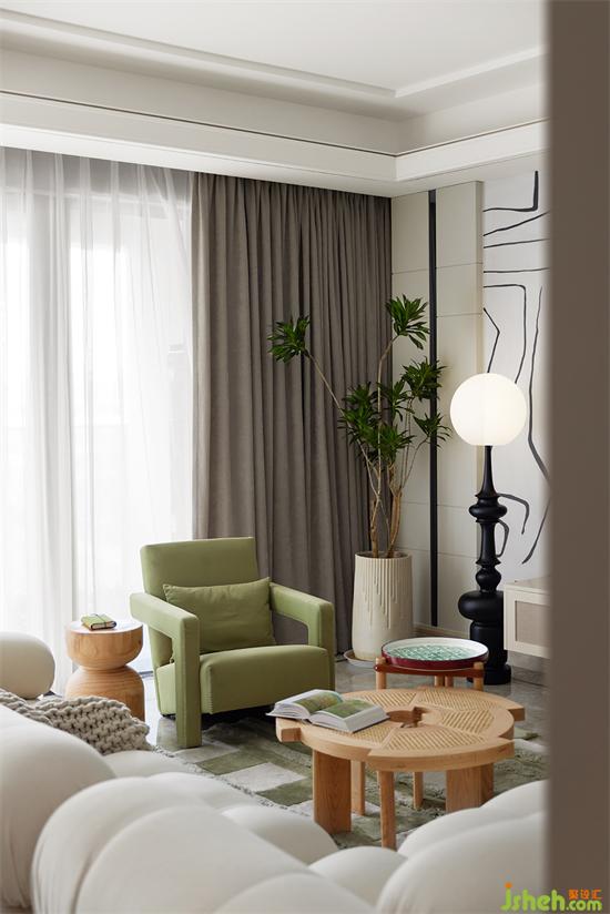 拥有着圆润弧线的餐桌,家装设计与富于造型感的圆形吊灯,均为空间增添了几分柔雅。准备些精致小巧的瓜果茶点,取一本喜欢的杂志,就能度过一整个惬意的下午茶时光。