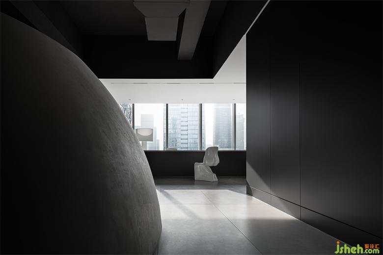 沙龙区的硬朗直线与公共办公区域的优雅弧线相结合,刚柔相济,展现出几何的艺术美感,办公室设计使空间富于变化,实现了一种微妙的平衡。