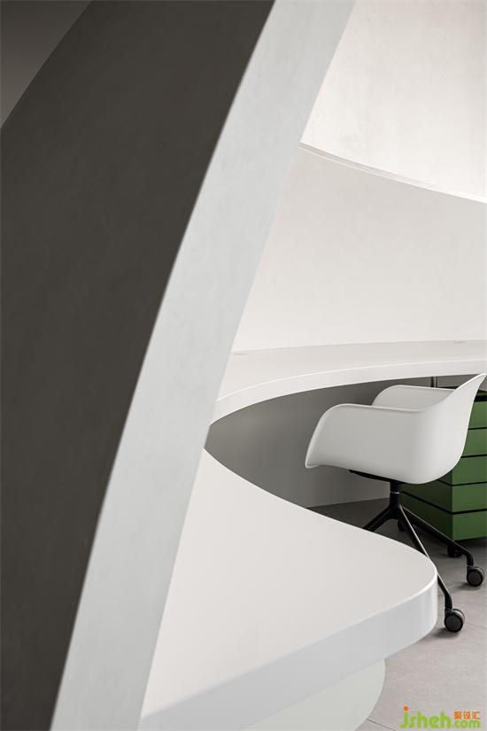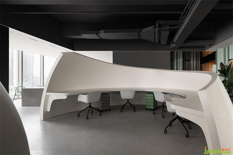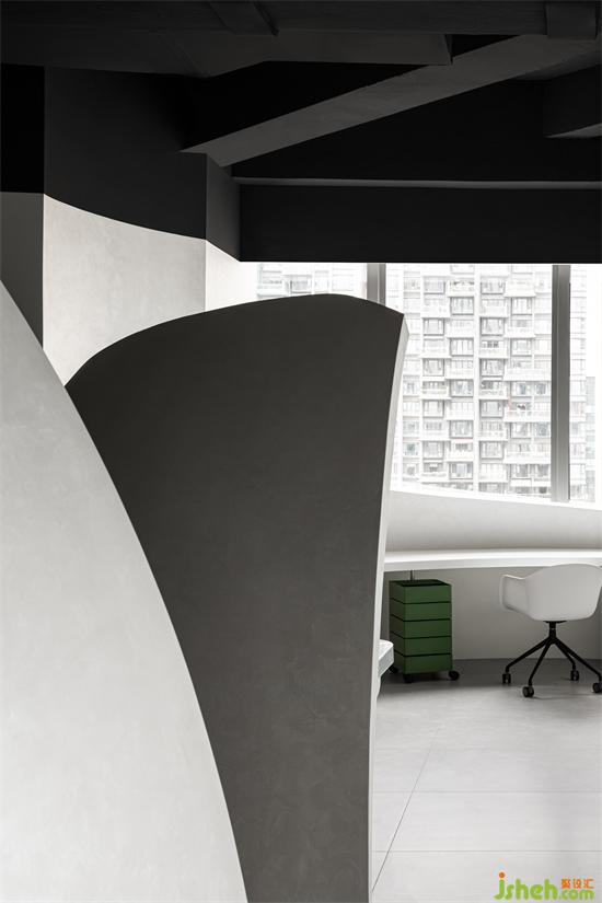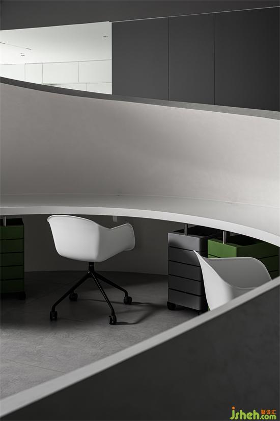 半开放的两个圆弧形空间作为员工日常的办公区域,彼此之间互相隔开,使得不同工位之间互不影响,保障员工安心办公。