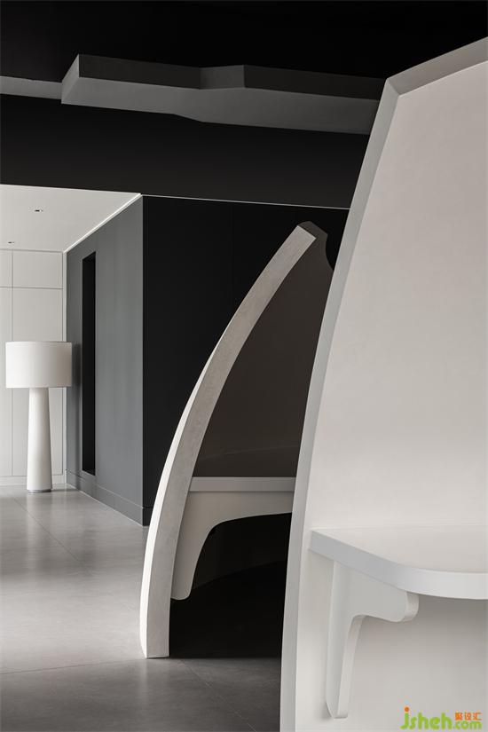 弧线在空间中的艺术组合,灵动优雅,除了承载公司文化之外,还丰富了整个空间的动线层次。办公室设计创始人与运营负责人在各自办公室中,都可以与公共办公区里各自主管的部门形成对望,视线错落有效的遮挡与开放,形成一种内外相联又彼此独立的空间格局。