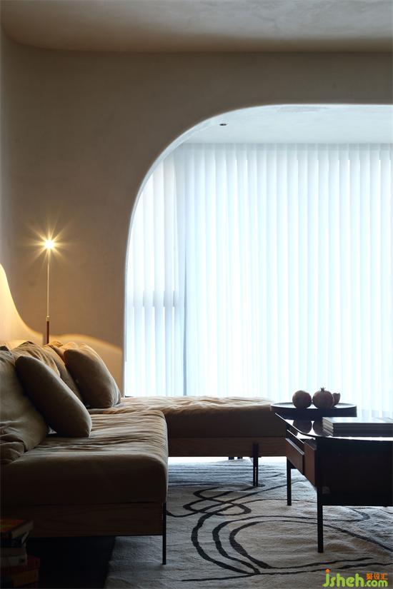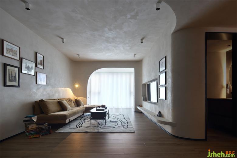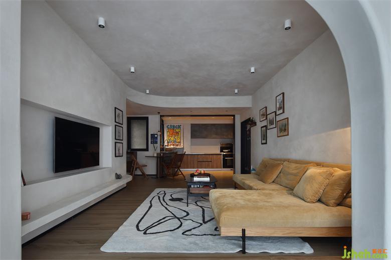 不拘泥于传统观念对居住空间的定义,房子的方正规矩被打破,家装设计利用弧形墙体,营造半包裹下的安全感,打造出独特而温馨的洞穴模样,简雅自然,充满质朴的诗意。