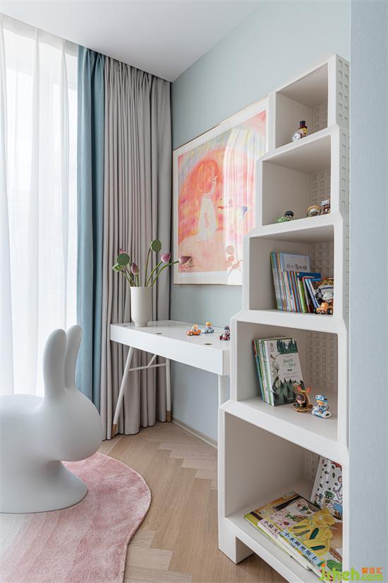 增加书柜面积,预留未来的写作区,同时为爱美的女孩设计了一面全身穿衣镜。