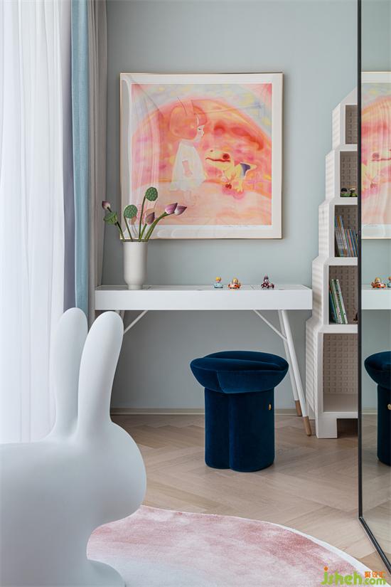 别墅设计以粉色调为主的女儿房,甜美烂漫,充满童趣,用心呵护着孩子心中最天真纯粹的公主梦。