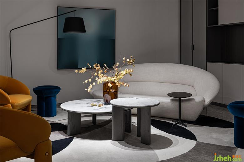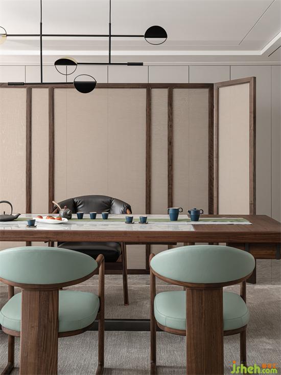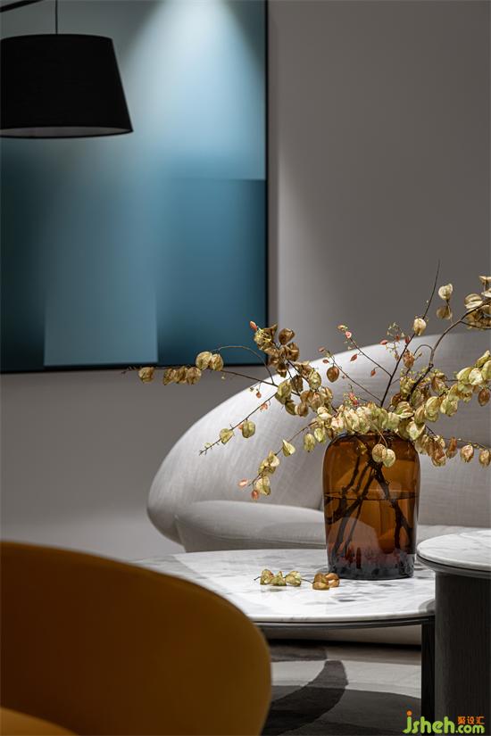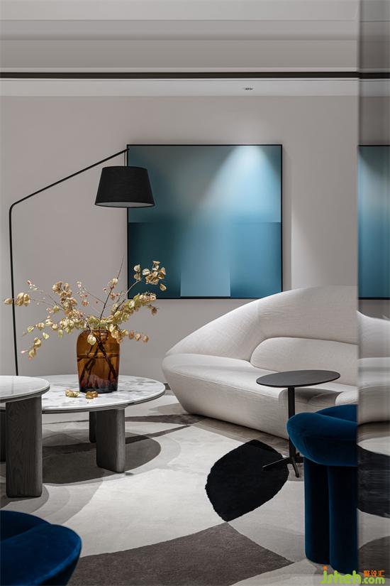 一抹沉静的蓝色作为空间中的调色,给人以视觉冲击,在和谐的节律中,将待客氛围烘托得恰到好处。