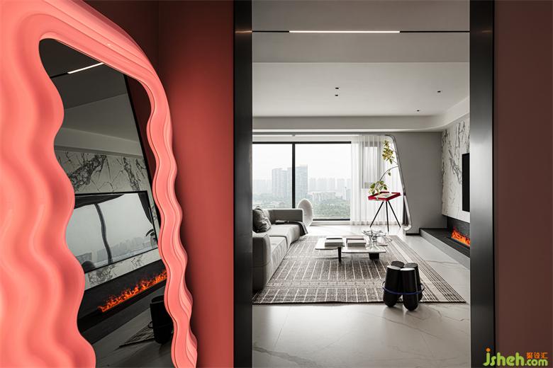 拥有活泼波浪线边框的网红镜,用抢眼的粉色让空间着上一层梦幻质感。