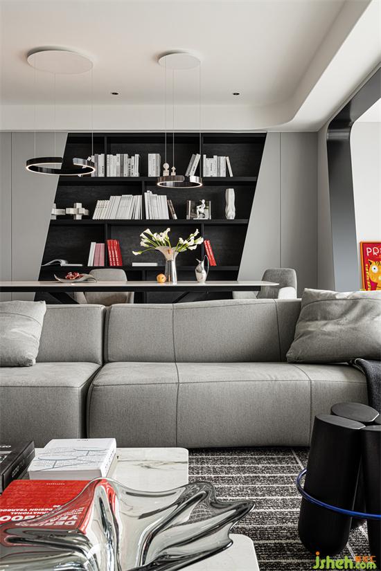 别具质感的"B&B Italia"沙发与几何感一足的Mi- notti茶几,将简约现代空间诠释得恰到好处。