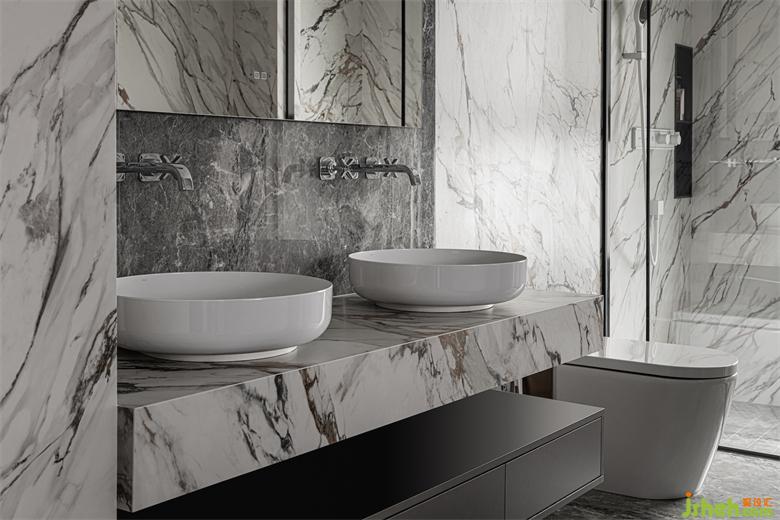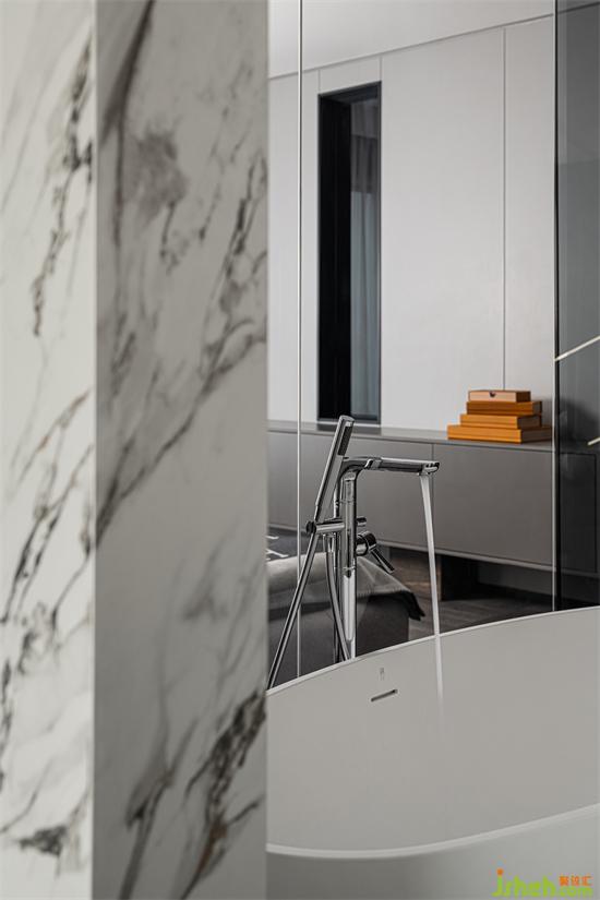 主卫以经典的白色为主色调,流动的纹路顺畅自然,整个空间纤尘不染,洁净有加。